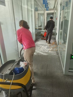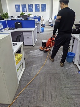 1000平方办公地毯清洗,污渍清除后地毯恢复原有色泽,纤维蓬松柔软,踩踏体验更加。